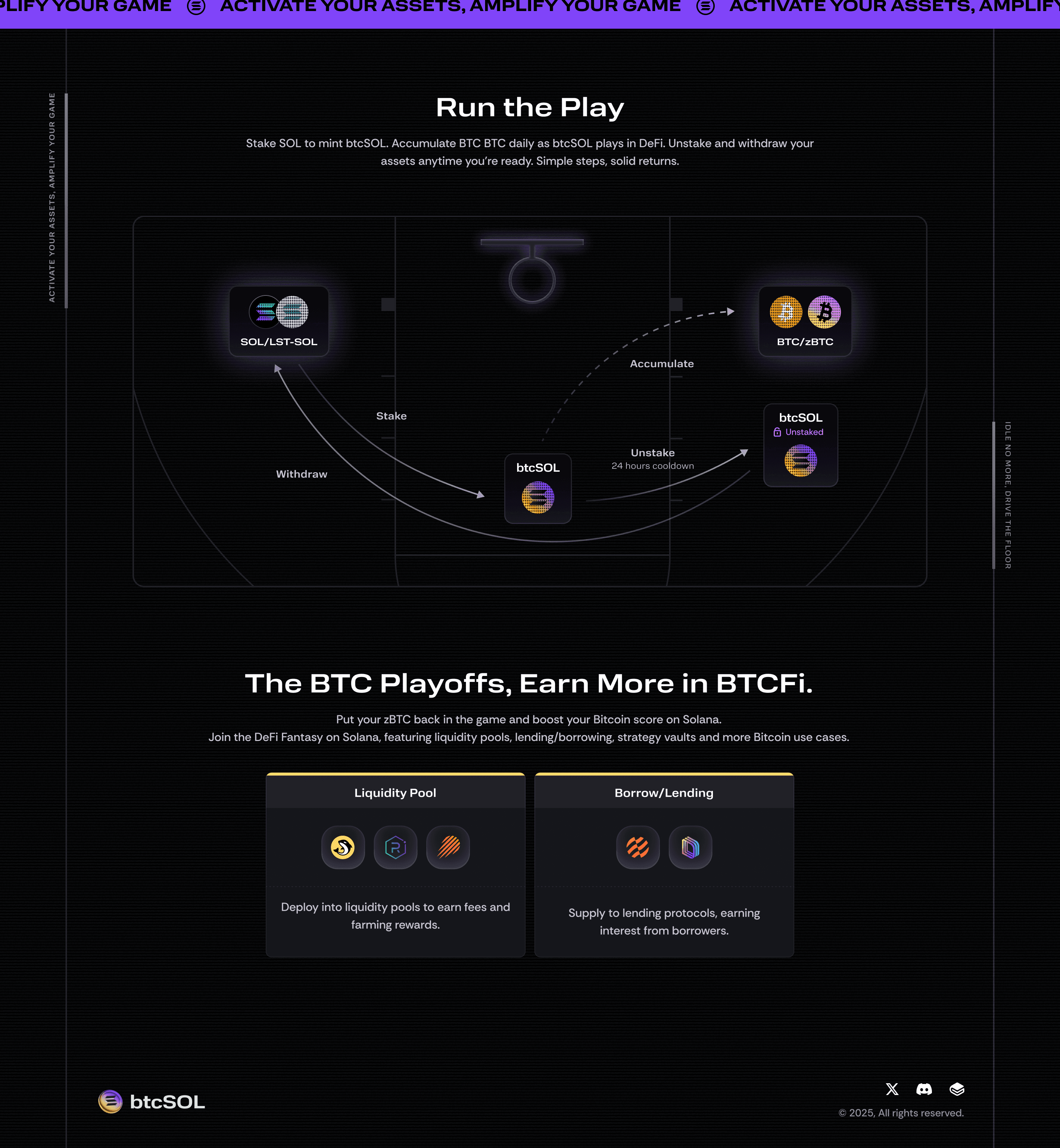 btcSOL leverages the interest generated from Solana staking through mSOL, automatically reinvesting the yields into wrapped Bitcoin (zBTC). This enables users who are bullish on BTC to maintain their SOL holdings while diversifying their investment exposure into BTC. The product features a unique brand identity inspired by sports, basketball, and retro elements, and utilizes generative AI to support the entire creative ideation process, enhancing design and brand differentiation.